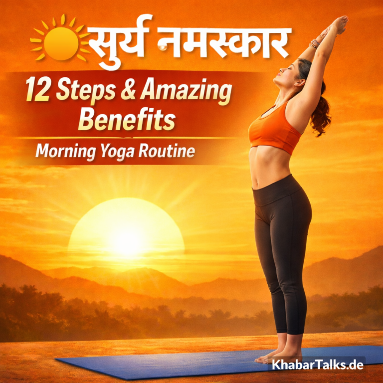 Surya Namaskar के 12 चरण, लाभ और सावधानियाँ जानें। सुबह 10 मिनट में पाएं फिट और हेल्दी बॉडी।